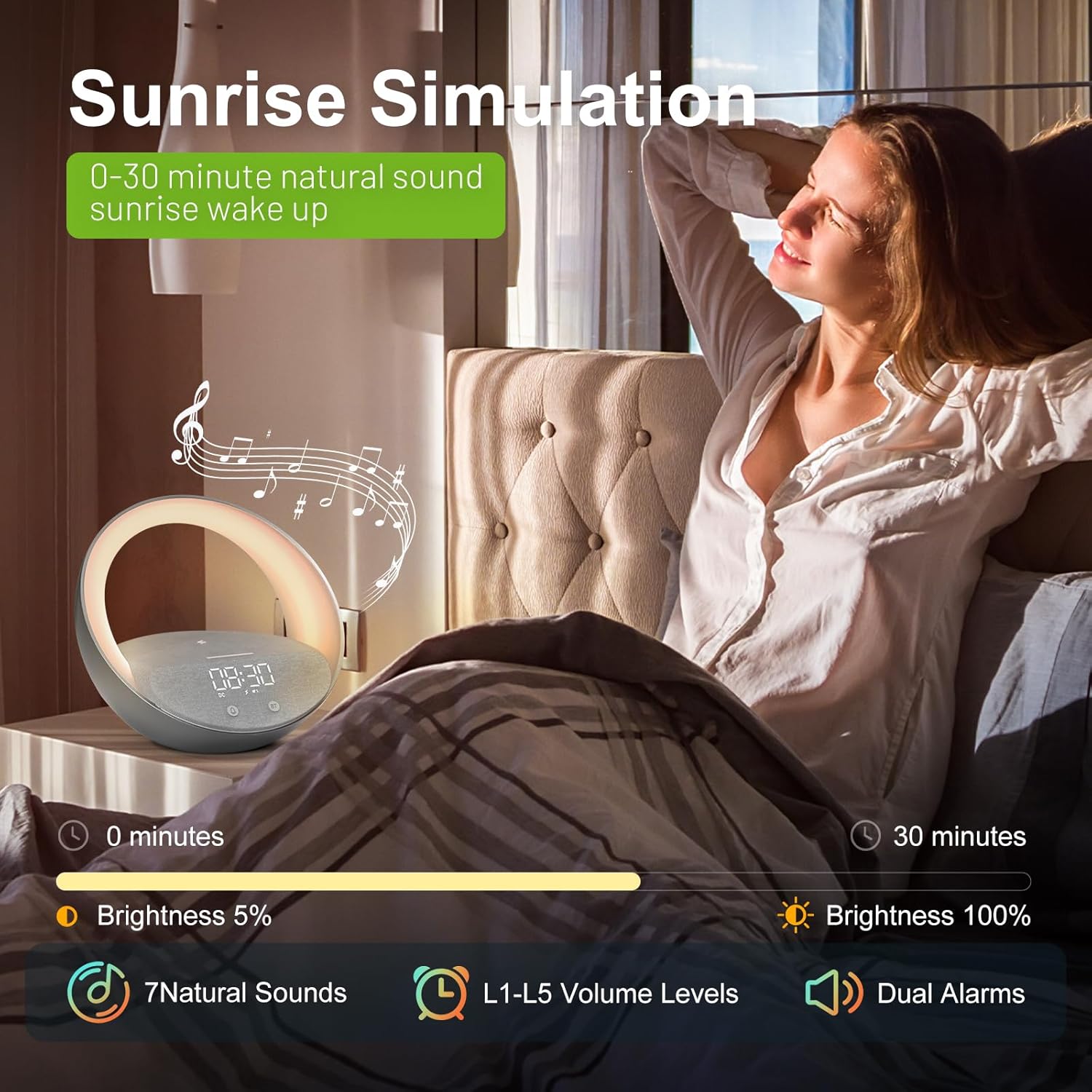 FUNFOR Bluetooth Speaker with 15W Wireless Charger Sunrise Alarm Clock