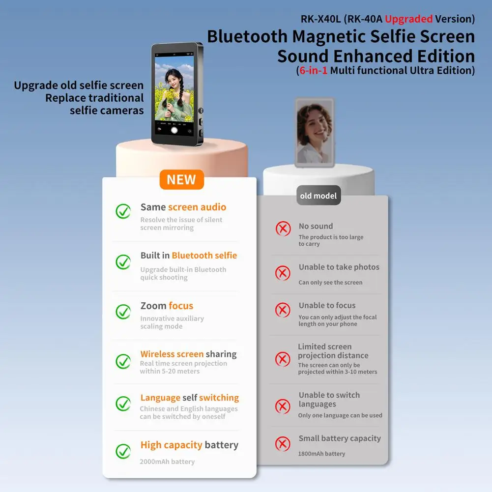 Selfie Monitor Screen Rear Portable Selfie Monitor Vlog Screen Magnetic Vlog Phone Rear Camera For Selfie Vlog Live Stream